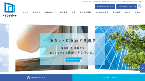 群馬県内は出張費無料で対応しており、電話番号0270-61-7840やお問い合わせフォーム、公式LINEから気軽にご連絡いただけます。実際に行った施工の様子やフィルムごとの期待できる効果の違いをブログで紹介し、窓フィルムが持つ遮熱や防災などの機能をコラムで詳しく解説することで、フィルム選びの参考になる情報を更新しています。窓フィルムの持つ可能性を活かして、皆様の暮らしをより快適で安全なものにしたいという想いで日々営業していますので、室内環境にお悩みの方はぜひ一度ご相談ください。