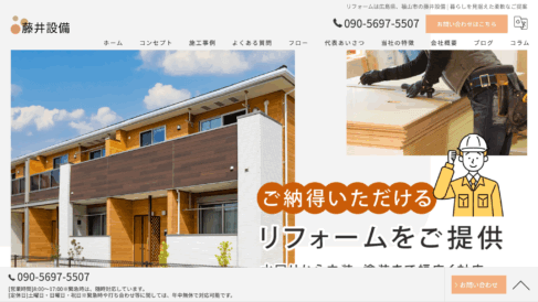 営業時間は8時から17時までですが、緊急時には随時対応しており、定休日の土曜日・日曜日・祝日であっても緊急時や打ち合わせ等に関しては年中無休で対応可能な体制を整えています。細かい箇所まで手を抜かず責任を持って作業する丁寧な姿勢とフットワークの軽さが強みであり、お客様の立場に立ったサービスを心がけることで地域の皆様から信頼をいただいています。福山市のほか尾道市や周辺地域にもお伺いし、地域に根差した業者として迅速かつ丁寧な対応を実現しています。