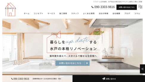 ㈱アサヒヤは、茨城県ひたちなか市を拠点に、水戸エリアを中心とした住宅リフォーム事業を展開しています。お客様の大切な住まいに関する工事だからこそ、ご要望やご予算をしっかりと汲み取りながら、本当に必要なリフォームだけをご提案することを基本姿勢としています。住まいの状態を丁寧に確認した上で最適な施工プランを立案し、過剰な工事を勧めることなく誠実に対応することで、お客様が安心してご相談いただける体制を整えています。